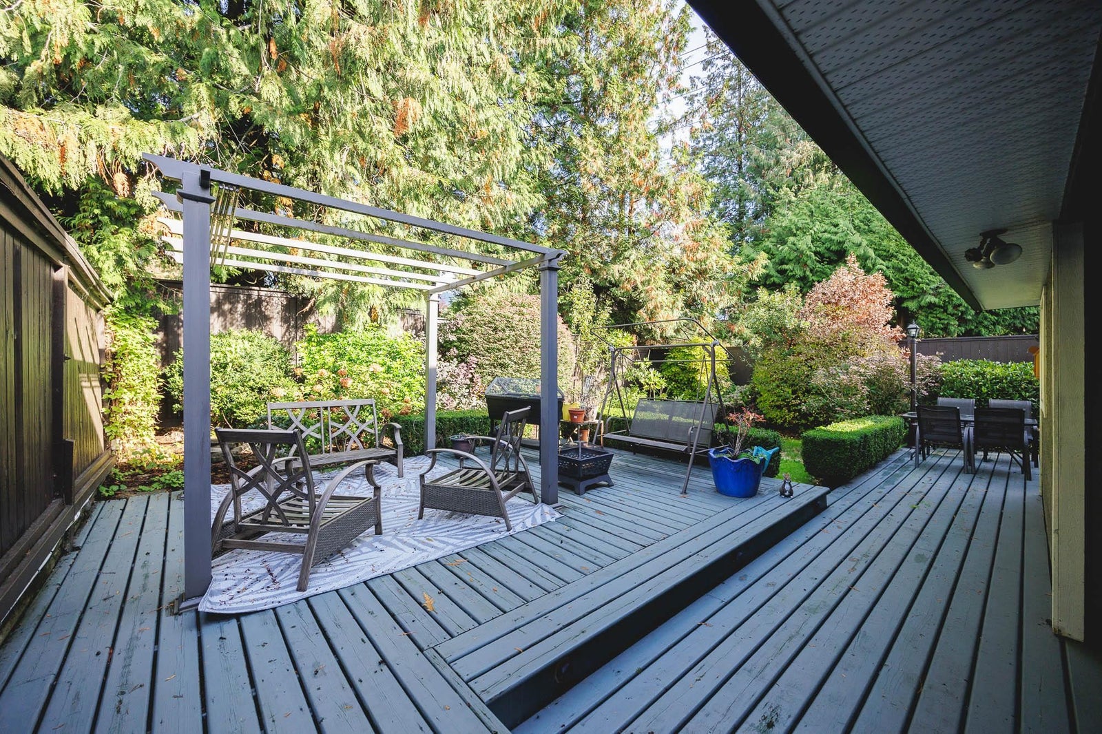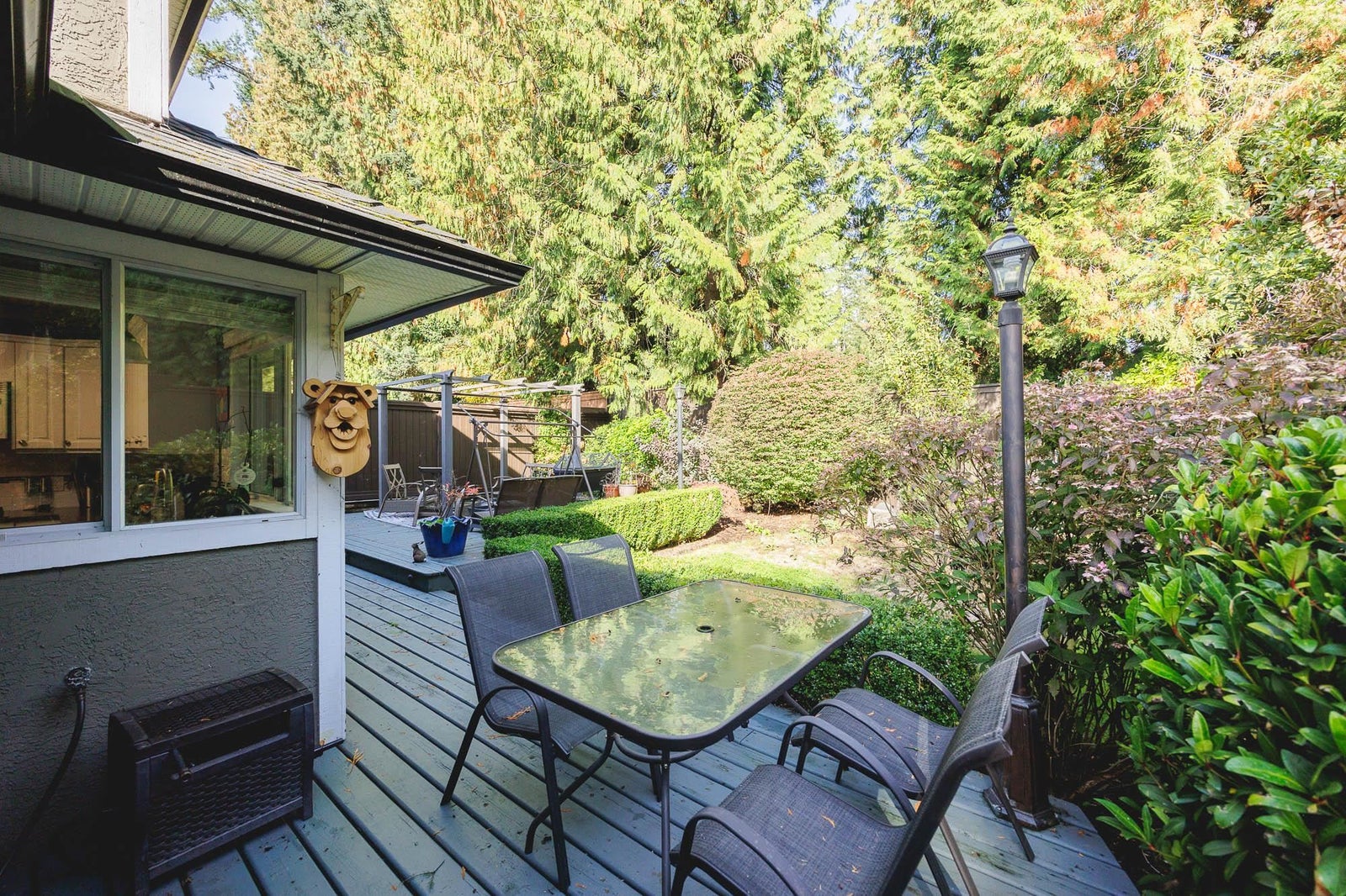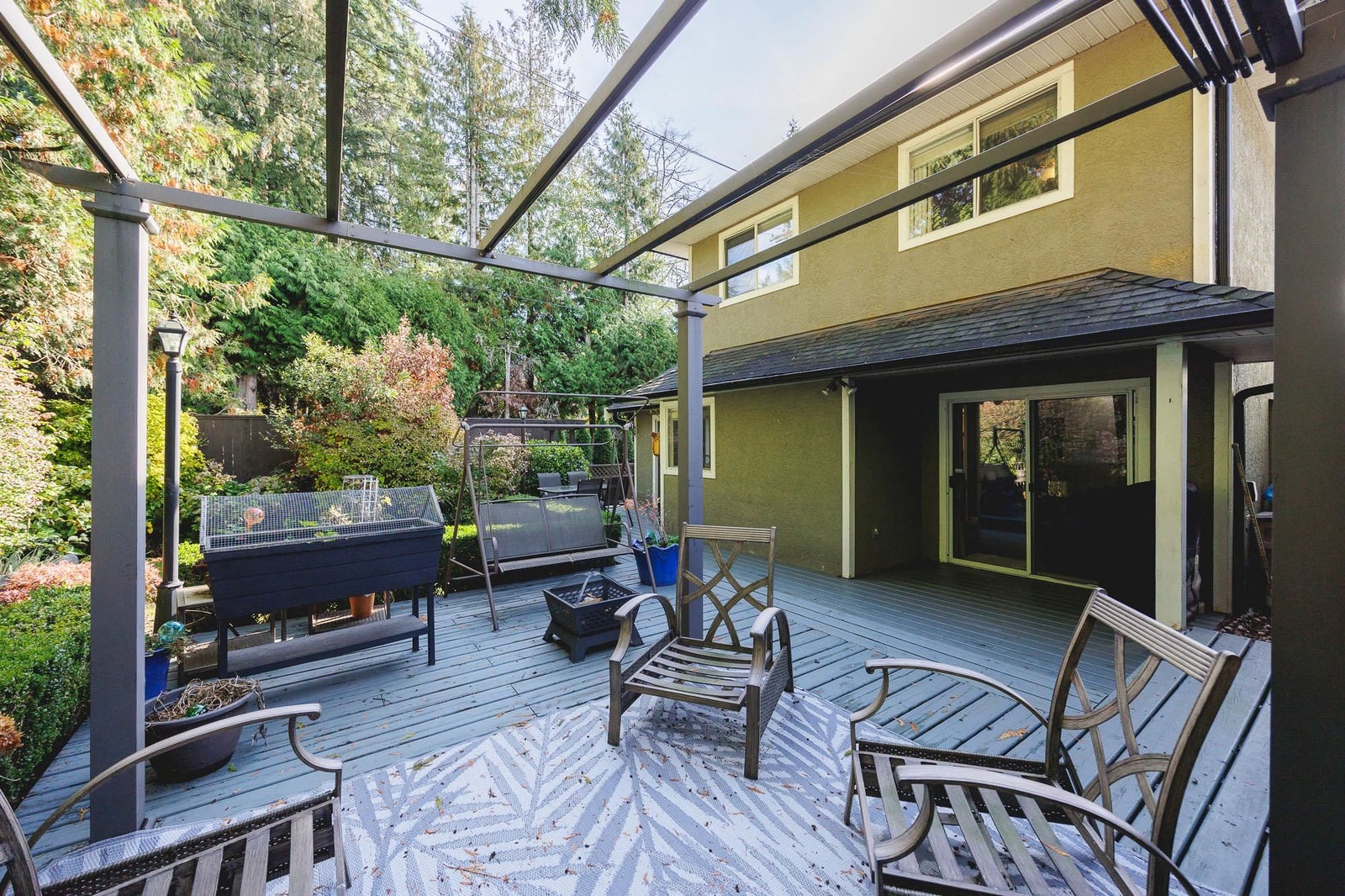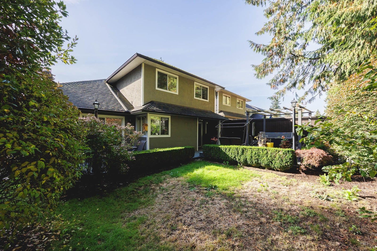 Discover this charming 3-bed + den, 2.5-bath home in sought-after Pemberton Heights. The living area greets you with a gas fireplace, crown moldings, hardwood floors, & a bay window. A built-in bar in the dining room makes entertaining effortless. The bright kitchen features quartz countertops, white cabinetry, newer appliances, an eating bar, and flowing into a family room that opens to a private backyard with a covered BBQ area. Upstairs, three bedrooms, including a primary suite with a walk-in closet & ensuite, this home also includes a 2 car garage. Leaf guard gutters, central A/C, in-ground sprinklers, & garden sheds add convenience. Located near Capilano Elementary, daycare, preschool, & the Corner Stone bistro, —an exceptional find in a prime North Shore location.