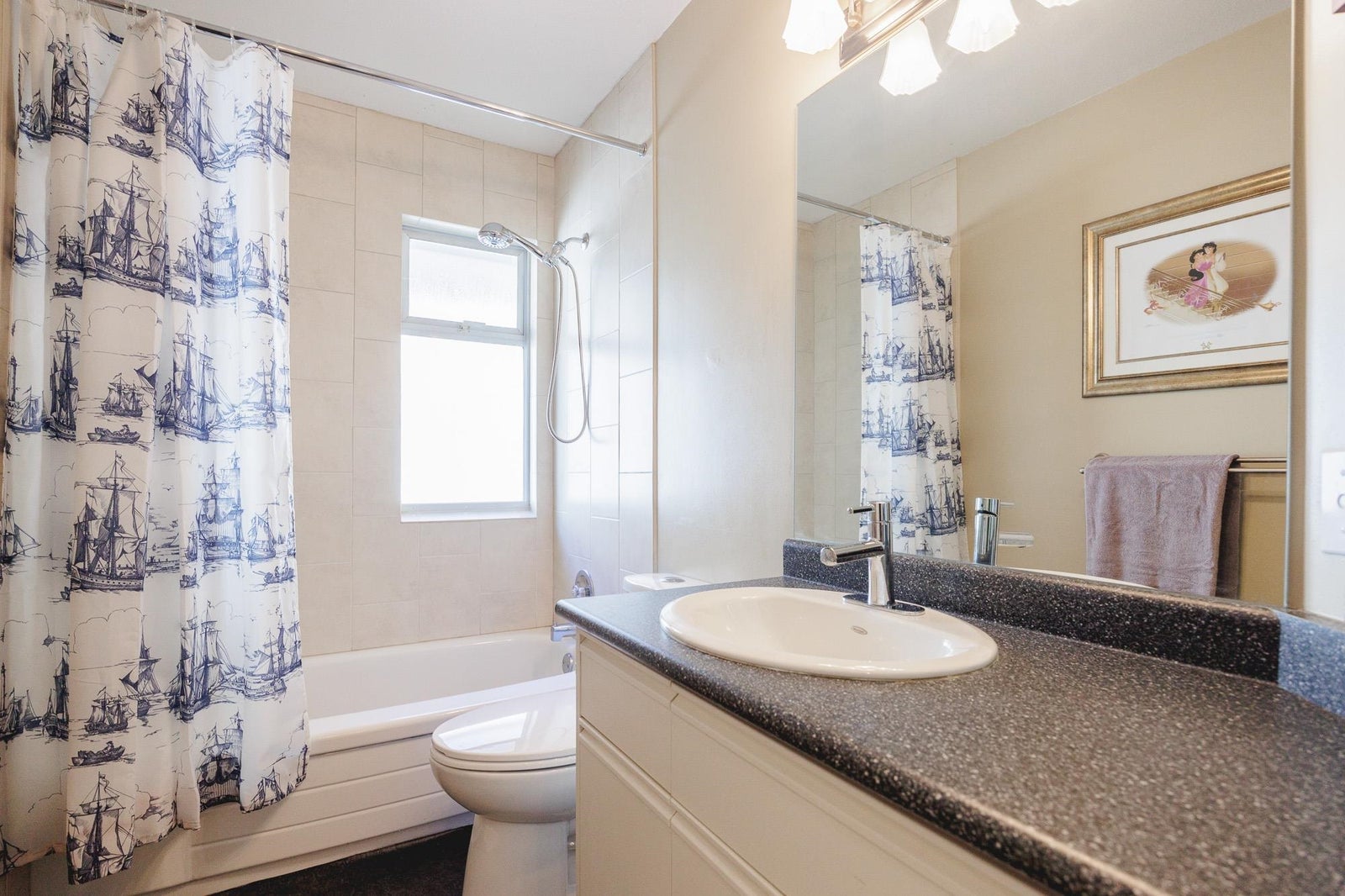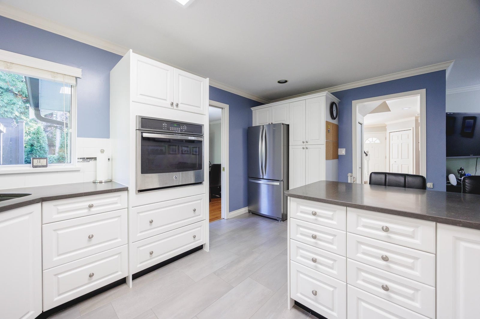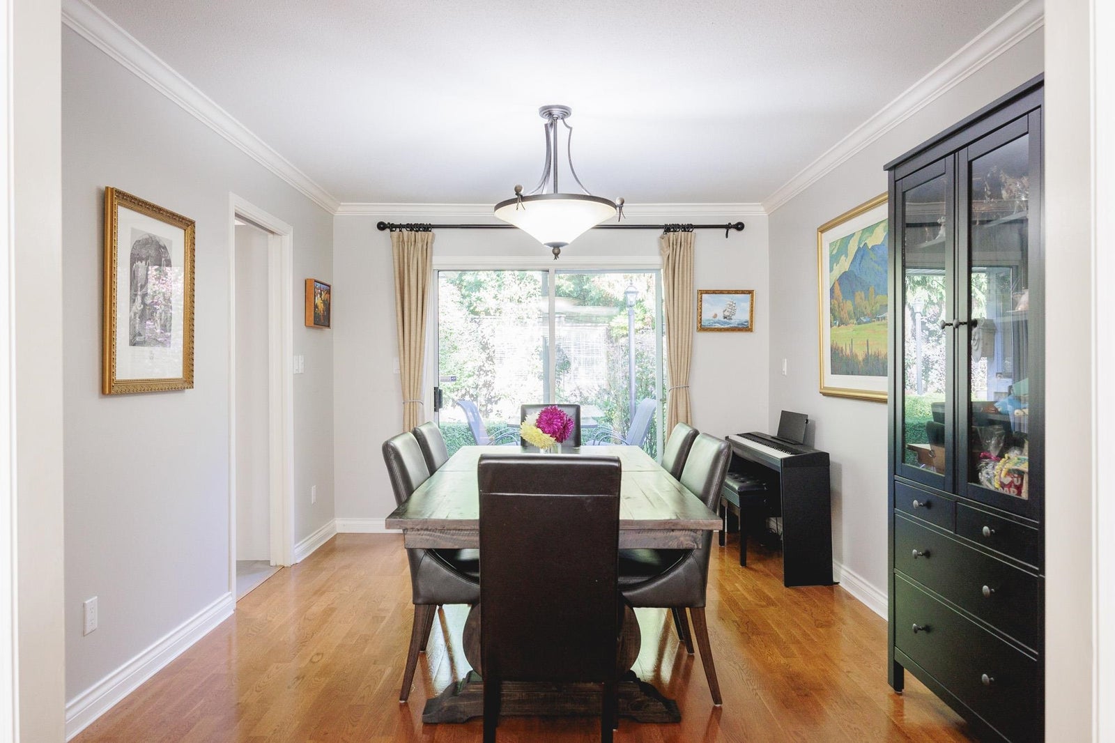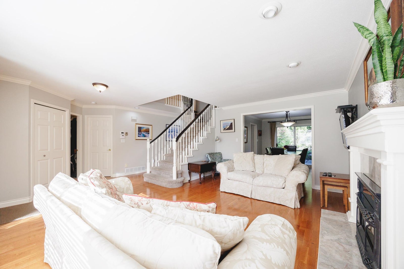 Discover this charming 3-bed + den, 2.5-bath home in sought-after Pemberton Heights. The living area greets you with a gas fireplace, crown moldings, hardwood floors, & a bay window. A built-in bar in the dining room makes entertaining effortless. The bright kitchen features quartz countertops, white cabinetry, newer appliances, an eating bar, and flowing into a family room that opens to a private backyard with a covered BBQ area. Upstairs, three bedrooms, including a primary suite with a walk-in closet & ensuite, this home also includes a 2 car garage. Leaf guard gutters, central A/C, in-ground sprinklers, & garden sheds add convenience. Located near Capilano Elementary, daycare, preschool, & the Corner Stone bistro, —an exceptional find in a prime North Shore location.