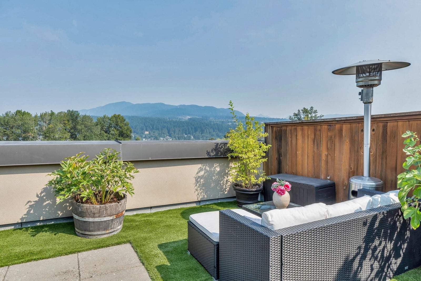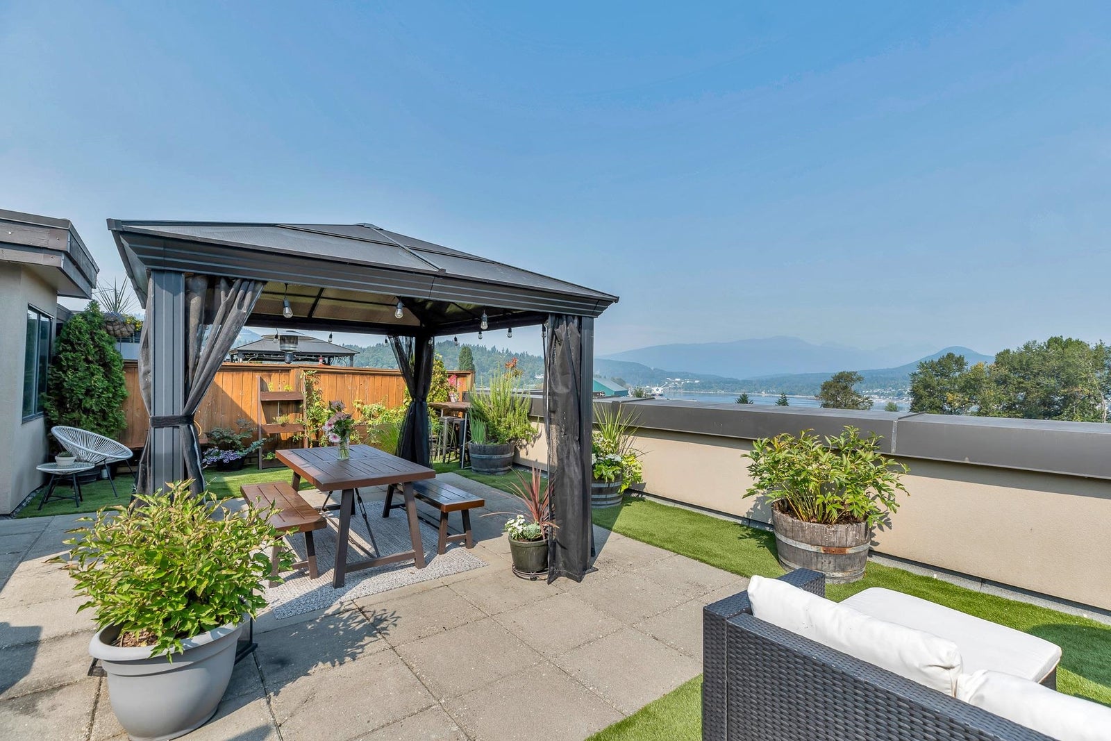 Rarely available and truly special, this penthouse at The Lighthouse in Port Moody offers a massive 760 sq ft rooftop patio with sweeping views of the mountains and Inlet. It is the perfect space for entertaining, BBQs, or morning yoga. Inside, this two bedroom, two bathroom home is beautifully maintained with new counters, stainless steel appliances, and a cozy gas fireplace. The layout is bright and open with no wasted space. The location is incredible, just steps to the Evergreen SkyTrain, West Coast Express, Rocky Point Park, local shops, breweries, and trails. With secure EV parking, an XL storage ROOM, a proactive strata with new gym, this is a rare opportunity to enjoy a private rooftop oasis with lifestyle and convenience combined.